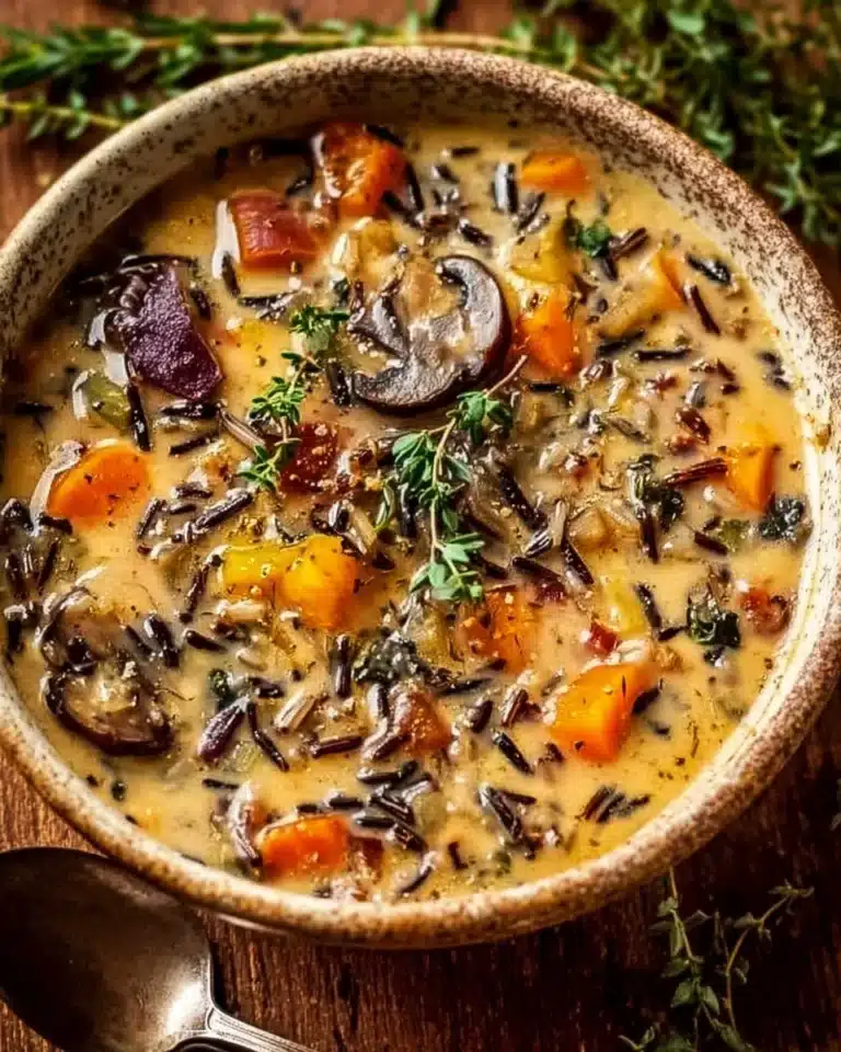 This Autumn Wild Rice Soup mixes nutty wild rice, tender chicken, and fall vegetables. It has cream for richness and nuts for crunch. You can make it on the stovetop and keep it mild or add a little heat with red pepper flakes. The recipe works with rotisserie chicken to save time.