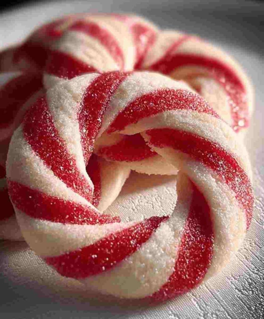 Candy cane–shaped cookies are inspired by classic American comfort food traditions surrounding holiday baking. Originating from the familiar striped candy that dates back centuries, this cookie adaptation became a popular holiday recipe during mid-20th-century celebrations. Families embraced the recipe for its cheerful appearance, simple ingredients, and nostalgic connection to Christmas. Today it remains a traditional family meal favorite for dessert tables, holiday parties, and festive gatherings.
