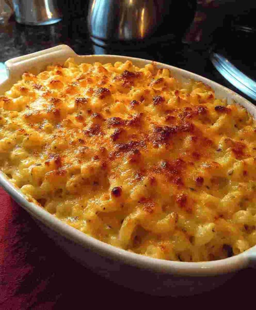 Baked mac and cheese traces its roots back to classic Southern comfort food traditions, where families gathered around hearty casseroles filled with cheese and love. Originally inspired by European pasta-and-cheese dishes, it evolved into an American staple that appears on holiday tables, Sunday dinners, and potlucks nationwide.