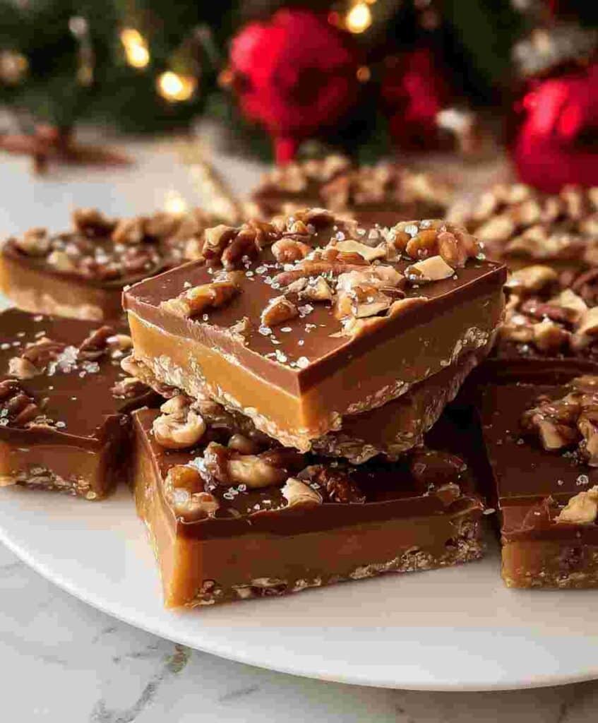 Extra Chopped Pecans and Flaked Sea Salt: Additional pecans add texture and visual appeal, while flaked sea salt gives a gourmet finish. This combination transforms a simple recipe into a holiday-worthy candy treat.