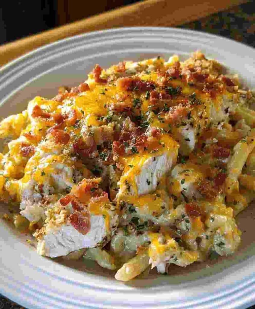 Crack chicken casserole is a modern American comfort dish rooted in the tradition of creamy casseroles popularized in the mid-20th century. Combining classic pantry staples like cream cheese, ranch seasoning, and bacon, this recipe reflects the evolution of American comfort food into what many families today consider an easy, reliable staple. Its popularity continues to grow thanks to its simple preparation and universal appeal, making it a staple in traditional family meals across the country.