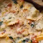 This creamy Tuscan ravioli soup warms you from the first spoon. It mixes Italian sausage, cheese ravioli, sun-dried tomatoes, spinach, and a rich cream base. The soup cooks quickly and feels like a cozy bowl of home. If you like sausage soups, try a similar dish like Creamy Italian Sausage Ditalini Soup for another easy comfort meal.