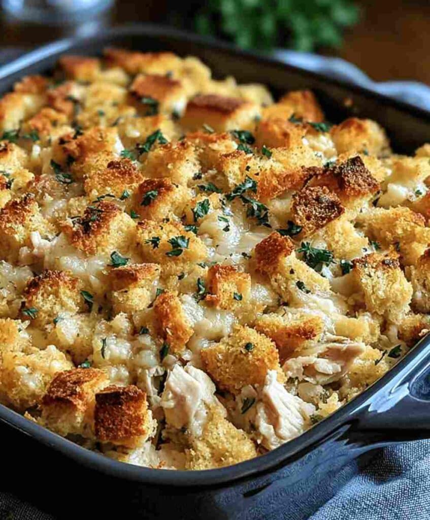 Casseroles like this one have deep roots in American comfort food traditions. They became especially popular in the mid-20th century, when home cooks embraced simple, one-dish meals made with pantry staples. Dolly’s Chicken and Stuffing Casserole embodies that same spirit affordable, hearty, and made to bring people together around the table.