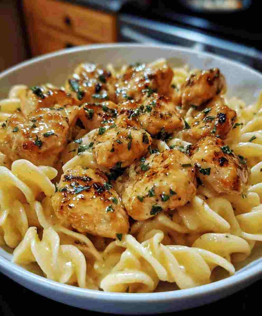 Garlic Butter Chicken Bites with Savory Creamy Parmesan Pasta
