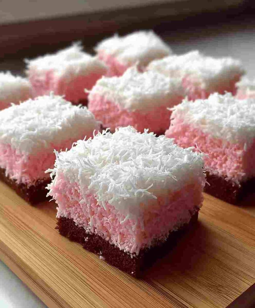 If you are craving a dessert that is soft, fluffy, and irresistibly nostalgic, these Pink Coconut Snowball Cake Bars deliver everything you love about classic comfort sweets with a beautiful modern twist. This recipe starts with a moist chocolate cake base layered under a cloud-like vanilla cream frosting and finished with a thick blanket of sweet, pink-tinted coconut. The texture is tender, the flavor is perfectly balanced, and the color makes it stunning enough for holidays, birthdays, family gatherings, school events, or simple weeknight treats at home.