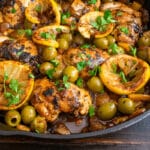 Un plat mijoté savoureux à base de poulet tendre, d'olives vertes et d'épices parfumées, typique de la cuisine méditerranéenne