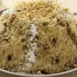Un plat marocain sucré-salé à base de vermicelles ou de couscous, garni d’amandes, de sucre glace et de cannelle.