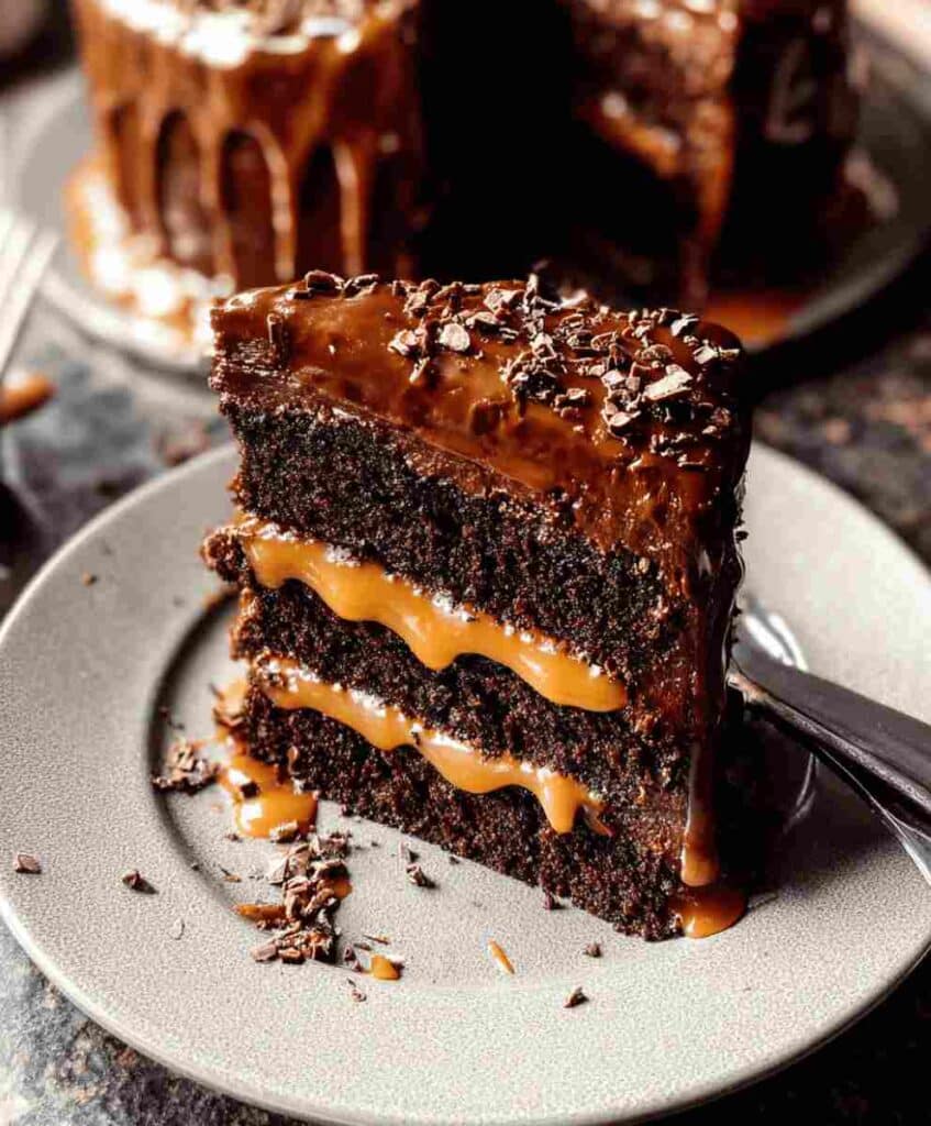 This cake is inspired by the modern American comfort food movement taking simple ingredients and transforming them into elevated, restaurant-quality treats. The combination of salted caramel and dark chocolate has its roots in French pastry traditions but has become a global favorite for its balance of flavors.