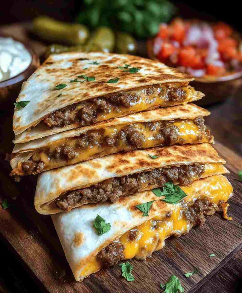 Smashburger-style cooking originated from classic American diners where thin, crispy-edged burgers became a signature staple. This recipe transforms that beloved burger method into a modern twist inspired by American comfort food. The combination of traditional burger flavors with the convenience of a quesadilla reflects today’s growing interest in fusion recipes, budget-friendly meals, and weeknight comfort foods that fit into a busy lifestyle.