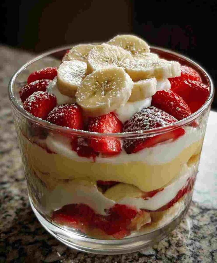 Banana pudding has long been considered an American comfort food classic, especially in Southern households where layered no-bake desserts are a cherished tradition. This modern variation blends that nostalgic base with fresh strawberries, adding brightness and a refreshing twist. It honors traditional family meals while introducing a contemporary flavor combination loved across generations.