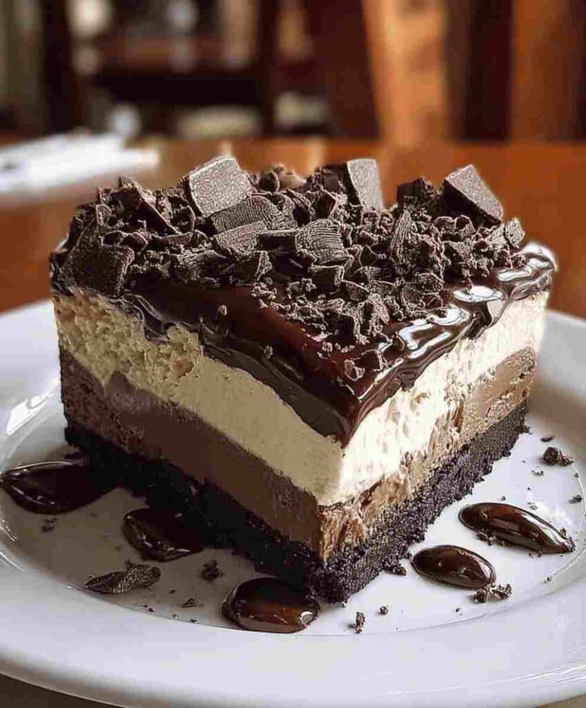 Cheesecake has ancient roots tracing back to Greece, but the modern chocolate cheesecake is a true American comfort food classic. The combination of cream cheese, chocolate, and Oreo crust became popular in the mid-20th century and remains a staple in holiday dinner recipes and family gatherings. This triple-layer version celebrates that legacy with a contemporary, elegant twist.