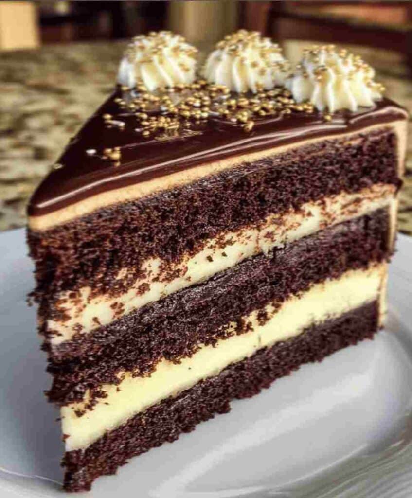 The Tuxedo Cake draws inspiration from the classic contrast of dark and white chocolate a timeless flavor pairing beloved in American comfort food desserts. Its name comes from the elegant black-and-white design of a formal tuxedo, symbolizing balance and sophistication. While modern versions vary, the essence remains the same: a luxurious dessert that’s simple, stunning, and endlessly satisfying.