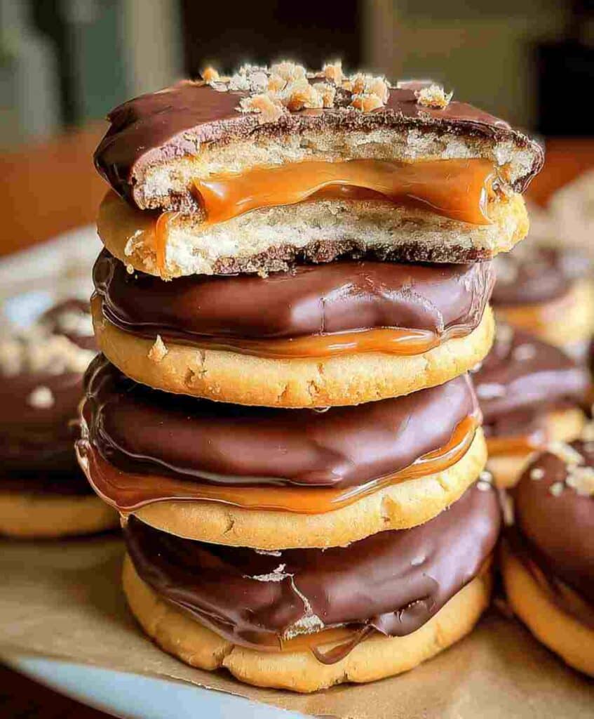 These cookies are inspired by the classic Twix candy bar, a favorite American sweet known for its crunchy cookie base, caramel layer, and chocolate coating. This homemade version transforms that concept into a soft, chewy cookie that fits perfectly into modern American comfort food desserts, blending nostalgia with fresh-from-the-oven appeal.